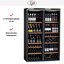 Производители предлагают винные шкафы, оснащенные одной, двумя, тремя и четырьмя камерами, которые могут располагаться как друг под другом, так бок и бок. Самые популярные — однокамерные модели, ассортимент которых особенно широк, но втором месте — двухкамерные. Над заметить, что количество камер не зависит напрямую от габаритов изделия: например, однокамерные модели увеличенных габаритов — далеко не редкость. Их высота может варьироваться в пределах от 14 см до 219 см, а ширина — от 13 см до 150 см.