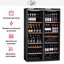Современные винные шкафы всех типов, в том числе компрессорные, темоэлектрические и абсорбционные, оснащаются электронной системой управления — кнопочной или сенсорной. Панель управления, с помощью которой производится регулировка параметров работы, может размещаться внутри винного шкафа за дверцей или снаружи в верхней части корпуса. Второй вариант более удобен, поскольку для изменения параметров не нужно открывать дверцу. Кроме того, такое расположение панели управления позволяет поддерживать более стабильную температуру в камере. Однако для больших винных шкафов в классическом стиле из ценных пород дерева предпочтительнее скрытая панель управления, которая не портит их внешний вид.