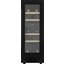 Стеклянная дверь — дополнительный изящный штрих к общему дизайну модели. Специальное покрытие защищает вино от влияния ультрафиолетовых лучей, которые проникают, если шкаф находится в солнечной комнате. Цвет корпуса — черный. Дверь можно перевесить на другую сторону, поэтому вариантов размещения его в доме становится больше.