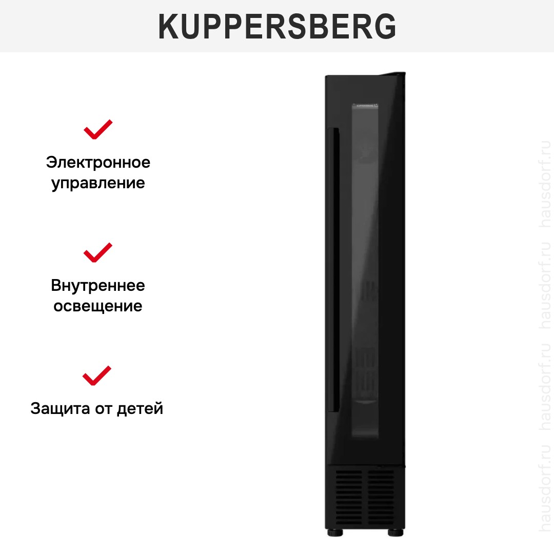 Встраиваемый винный шкаф Kuppersberg RBW 15 представляет собой утончённый кухонный модуль, где современный дизайн сочетается с продуманной функциональностью: компактный корпус высотой 87 см, шириной 15 см и глубиной 52,5 см идеально впишется в нишу 87×15,5×52,5 см, позволяя рационально использовать пространство кухни или барной зоны; исполнение в черном цвете и дверца со стеклопакетом в тонкой рамке подчёркивают эстетичность, а накладная ручка придаёт благородный акцент фасаду, при этом при необходимости створку можно перенавесить — заводская конфигурация с дверным упором справа не ограничивает вариативность монтажа. Этот прибор — монотемпературная модель с одним внутренним отделением и одной температурной зоной, рассчитанной на поддержание диапазона от 5 до 20 °C, что обеспечивает стабильные условия для короткого и среднего срока хранения напитков; полезный объём составляет 20 литров, что соответствует вместимости до семи классических бутылок по 0,75 л, размещаемых на семи уровнях из прочного пластика, которые обеспечивают аккуратную укладку и быстрый доступ к каждой позиции. Охлаждение реализовано на базе одного компрессора с хладагентом R600a (12 г), обеспечивающего эффективную работу при низком уровне шума — всего 39 дБ — и умеренном энергопотреблении: годовой расход около 130 кВт·ч; электрические параметры включают напряжение 220-240 В, частоту 50 Гц и силу тока 10 А, длина сетевого шнура составляет 1,55 м, что облегчает подключение в стандартных бытовых условиях. Панель управления электронного типа позволяет точно регулировать режимы, оснащена индикацией температуры и индикатором включения, а удобный дисплей отражает текущие параметры, что делает эксплуатацию понятной и комфортной; внутренняя подсветка обеспечивает хорошую видимость этикеток и помогает подчеркнуть коллекцию без лишних усилий. Среди дополнительных практичных решений — регулируемые опоры для выравнивания при встраивании, функция защиты от детей для безопасной эксплуатации в семейном окружении, а также небольшой вес в 17,6 кг, позволяющий легко проводить монтаж и обслуживание. Благодаря сочетанию аккуратных габаритов, лаконичного внешнего вида и технико-эксплуатационных характеристик эта модель станет хорошим выбором для любителей вина, ищущих компактный встроенный вариант с надёжной компрессорной системой; если вам важно вписать элемент хранения в современную кухонную композицию без потери качества условий для напитков, этот вариант от Kuppersberg органично решит задачу в сегменте винные шкафы.