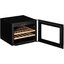 Электронное управление помогает быстро разобраться в том, как функционирует эта модель, и легко настроить все необходимые параметры. На дисплее отображаются данные, которые собирают датчики в камере. Лампочки, расположенные внутри, хорошо подсвечивают бутылки. Всего полок, на которых можно разместить коллекцию, в шкафу 2 шт.