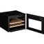 Электронное управление помогает быстро разобраться в том, как функционирует эта модель, и легко настроить все необходимые параметры. На дисплее отображаются данные, которые собирают датчики в камере. Лампочки, расположенные внутри, хорошо подсвечивают бутылки. Всего полок, на которых можно разместить коллекцию, в шкафу 2 шт.
