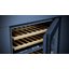 Встраиваемые холодильники для вина оснащаются специальной системой вентиляции: охлаждающая система у них находится в нижней части корпуса спереди. На такие устройства не навешивается мебельный фасад: дверца с затемненным стеклом остается на виду и открывается на достаточно широкий угол для свободного выдвижения деревянных полок.