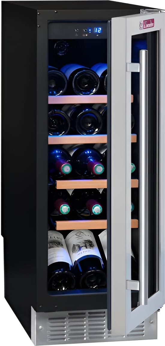 Дверца у большинства винных шкафов изготавливается из многослойного тонированного стекла. Такой материал, с одной стороны, позволяет оценивать коллекцию вин визуально, не открывая дверцу, в условиях стабильной температуры и влажности. С другой стороны, затемненное стекло с УФ-фильтром в виде напыления или специальной пленки надежно изолирует винные бутылки негативного воздействия ультрафиолетового излучения. Несколько слоев стекла обеспечивают при этом дополнительную защиту. Очень часто стекло в дверце заключается в рамку из дерева или металла. Натуральный или окрашенный металл или дерево не только способствуют прочности конструкции, но и превращают винный холодильник, особенно отдельно стоящий, в эффектный элемент обстановки.