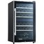 Дверца у большинства винных шкафов изготавливается из многослойного тонированного стекла. Такой материал, с одной стороны, позволяет оценивать коллекцию вин визуально, не открывая дверцу, в условиях стабильной температуры и влажности. С другой стороны, затемненное стекло с УФ-фильтром в виде напыления или специальной пленки надежно изолирует винные бутылки негативного воздействия ультрафиолетового излучения. Несколько слоев стекла обеспечивают при этом дополнительную защиту. Очень часто стекло в дверце заключается в рамку из дерева или металла. Натуральный или окрашенный металл или дерево не только способствуют прочности конструкции, но и превращают винный холодильник, особенно отдельно стоящий, в эффектный элемент обстановки.