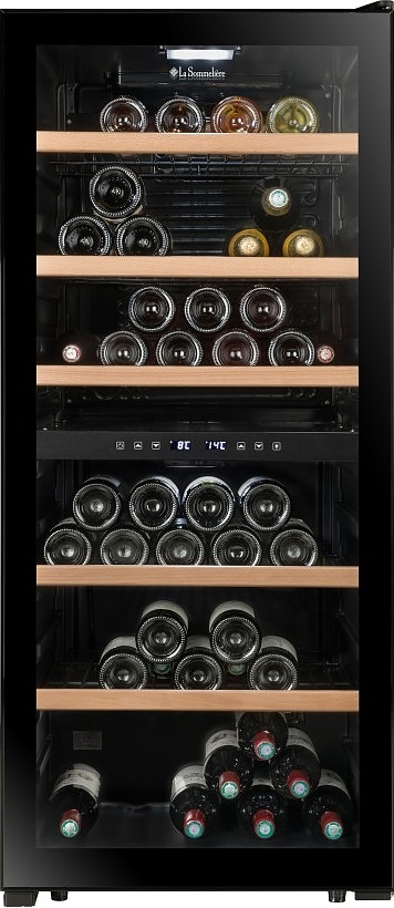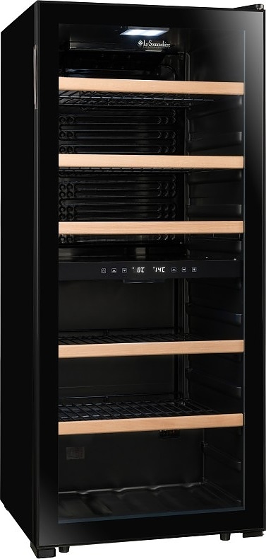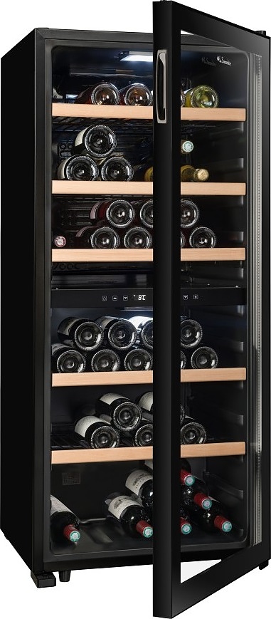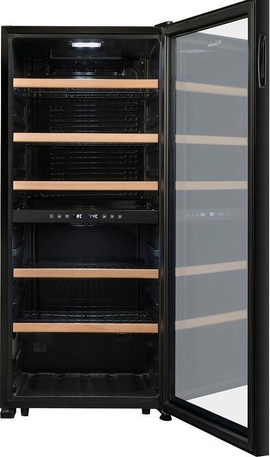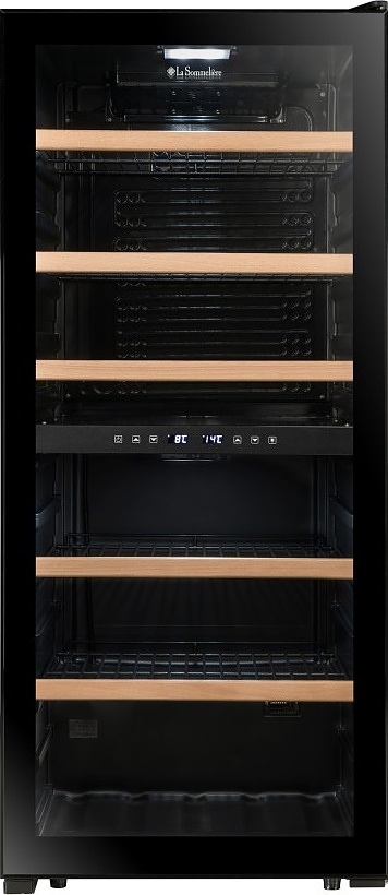 Винный шкаф La Sommeliere LS102DZBLACK — элегантное и технологичное решение для хранения вин, разработанное с учётом требований как начинающих энтузиастов, так и искушённых коллекционеров. Эта отдельностоящая модель выполнена в строгом чёрном исполнении, подчёркивающем её современный и солидный облик, и легко вписывается в интерьеры от классических до урбанистических. Благодаря компрессорной системе охлаждения устройство обеспечивает стабильную и точную температуру в обеих зонах, что критически важно для сохранения аромата, структуры и потенциала выдержки напитков. Несмотря на наличие одной камеры, прибор оснащён двумя независимыми температурными зонами: верхняя поддерживает диапазон от 5 до 12 C — идеальный для белых, игристых и молодых розовых вин, а нижняя регулируется в пределах 12–18 C, создавая оптимальные условия для красных сортов, включая выдержанные кюве. Общая высота устройства составляет 127,7 см при ширине 55 см и глубине 58,5 см, что делает его компактным для своей вместимости и функциональности. Внутреннее пространство организовано с учётом эргономики: регулируемые полки из дерева или металла (в зависимости от комплектации) надёжно удерживают бутылки и позволяют гибко адаптировать зоны под разные форматы. УФ-защитное стекло дверцы предотвращает негативное воздействие солнечного света, сохраняя качество содержимого, а встроенная подсветка мягко акцентирует внимание на коллекции без перегрева. Тихая работа компрессора не нарушает атмосферу покоя в жилом пространстве, а надёжная теплоизоляция минимизирует энергопотребление и исключает температурные колебания. Шкаф поддерживает постоянную влажность, предотвращая пересыхание пробок и обеспечивая герметичность бутылок на протяжении долгих месяцев. Он идеально подойдёт как для домашнего использования, так и для ресторанов, где важна точность и презентабельность хранения. Этот прибор — не просто техника, а винный погреб в миниатюре, позволяющий наслаждаться каждым бокалом в его наилучшем состоянии. Сочетание инженерной точности, эстетики и функциональности делает модель разумным выбором для тех, кто ценит вино как часть культуры и образа жизни.