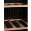 Полки в винных шкафах позволяют размещать бутылки для хранения в горизонтальном положении. Это необходимо, чтобы пробка постоянно смачивалась жидкостью и не пересыхала. Плотно закрытая пробка гарантирует, что внутрь бутылки не проникнет наружный воздух. Кислород, содержащийся в воздухе, может стать причиной ухудшения вкуса вина и даже его скисания. Кроме того, горизонтальное положение позволяет лучше оценить количество осадка. Материал изготовления полок выбирается, исходя из требований, предъявляемых к содержанию коллекции вин. Одним из основных требования является отсутствие или максимальное сокращение вибрации и хорошая фиксация бутылок на месте хранения. Даже если полка выдвигается, бутылки должны оставаться на своем месте. Второе требование исключает применение стеклянных полок, как в обычном холодильнике: на них почти невозможно зафиксировать бутылки.