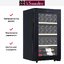 Производители предлагают винные шкафы, оснащенные одной, двумя, тремя и четырьмя камерами, которые могут располагаться как друг под другом, так бок и бок. Самые популярные — однокамерные модели, ассортимент которых особенно широк, но втором месте — двухкамерные. Над заметить, что количество камер не зависит напрямую от габаритов изделия: например, однокамерные модели увеличенных габаритов — далеко не редкость. Их высота может варьироваться в пределах от 14 см до 219 см, а ширина — от 13 см до 150 см.