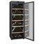 Стеклянная дверь — дополнительный изящный штрих к общему дизайну модели. Специальное покрытие защищает вино от влияния ультрафиолетовых лучей, которые проникают, если шкаф находится в солнечной комнате. Цвет корпуса — черный.