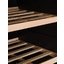 Полки в винных шкафах позволяют размещать бутылки для хранения в горизонтальном положении. Это необходимо, чтобы пробка постоянно смачивалась жидкостью и не пересыхала. Плотно закрытая пробка гарантирует, что внутрь бутылки не проникнет наружный воздух. Кислород, содержащийся в воздухе, может стать причиной ухудшения вкуса вина и даже его скисания. Кроме того, горизонтальное положение позволяет лучше оценить количество осадка. Материал изготовления полок выбирается, исходя из требований, предъявляемых к содержанию коллекции вин. Одним из основных требования является отсутствие или максимальное сокращение вибрации и хорошая фиксация бутылок на месте хранения. Даже если полка выдвигается, бутылки должны оставаться на своем месте. Второе требование исключает применение стеклянных полок, как в обычном холодильнике: на них почти невозможно зафиксировать бутылки.