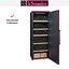 Производители предлагают винные шкафы, оснащенные одной, двумя, тремя и четырьмя камерами, которые могут располагаться как друг под другом, так бок и бок. Самые популярные — однокамерные модели, ассортимент которых особенно широк, но втором месте — двухкамерные. Над заметить, что количество камер не зависит напрямую от габаритов изделия: например, однокамерные модели увеличенных габаритов — далеко не редкость. Их высота может варьироваться в пределах от 14 см до 219 см, а ширина — от 13 см до 150 см.