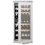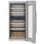 Небольшой шкаф серебристого цвета высотой 123 см позволит разместить коллекцию из 48 бутылок Бордо объемом 0,75 л. Температуру внутри камеры можно регулировать в пределах от +5°C до +20°C. Встроенный в изоляционную панель фильтр из активированного угля FreshAir устраняет посторонние запахи и может быть легко заменен. Циркуляционное охлаждение гарантирует, что во всей камере будет поддерживаться одинаковая температура. Дверца оснащена доводчиком SoftSystem и закрывается очень мягко. Стеклопакет в дверце задерживает ультрафиолетовое излучение. Плавно меняющееся и продолжительно включаемое светодиодное освещение также способствует сохранности коллекции. Бутылки размещаются на шести полках, изготовленных из натурального дерева. Четыре полки могут выдвигаться на телескопических шинах. Для регулировки температуры в камере служит сенсорная панель управления с ЖК-дисплеем и функцией блокировки от детей. О неплотно закрытой двери оповещает звуковой сигнал. Дверной упор расположен справа, но при встраивании может быть перенесен на левую сторону. Модель отличает рекордно низкий уровень шума 34 дБ и высокий класс энергетической эффективности A.