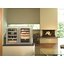 Встраиваемые холодильники для вина оснащаются специальной системой вентиляции: охлаждающая система у них находится в нижней части корпуса спереди. На такие устройства не навешивается мебельный фасад: дверца с затемненным стеклом остается на виду и открывается на достаточно широкий угол для свободного выдвижения деревянных полок.