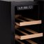 Внутреннее пространство рассчитано на полезный объем 28 литров и хранение до восьми бутылок 0,75 л. Три деревянные полки из бука аккуратно держат бутылки в горизонтальном положении и придают интерьеру тёплый акцент. Дерево смягчает вибрации от компрессора, уменьшая беспокойство осадка вина. LED‑освещение равномерно подсвечивает полки и помогает быстро выбрать бутылку без лишнего открытия двери.