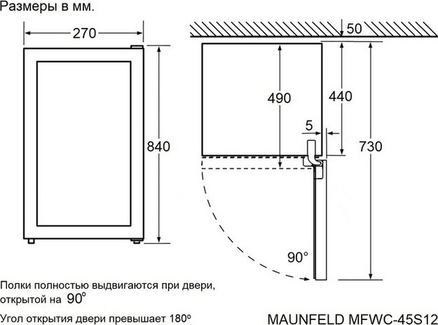 Винный холодильник Maunfeld MFWC-45S12 имеет одну температурную зону, в которой можно разместить бутылки и единовременно выставить только одну комбинацию настроек. Он устанавливается отдельно, что удобно, если у вас есть специальное помещение — кладовая, погреб и т.д. Благодаря компактным размерам данная модель — отличный выбор для офиса, гостиничного номера. Количество бутылок, которое можно разместить с учетом полной комплектации и из расчета объема бутылки 0,75 л, — 12 шт.