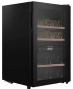 Стеклянная дверь — дополнительный изящный штрих к общему дизайну модели. Специальное покрытие защищает вино от влияния ультрафиолетовых лучей, которые проникают, если шкаф находится в солнечной комнате. Цвет корпуса — черный.