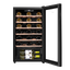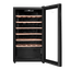 Внешний вид выполнен в строгом черном цвете с металлическим корпусом и скрытой ручкой, что делает прибор лаконичным и современным. Дверь со стеклопакетом и UV-защитой не только демонстрирует содержимое, но и защищает напитки от вредного солнечного излучения. Компактные габариты 87.5×48×43.5 см позволяют расположить шкаф в кухне, барной зоне или небольшом ресторане, не занимая много места.