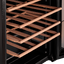 Внутреннее пространство рассчитано на 34 бутылки по 0,75 л и полезный объем 85 литров. Шесть выдвижных полок из бука аккуратно поддерживают бутылки и уменьшают вибрации при контакте с поверхностью. Дерево не только декоративно выглядит, но и мягче относится к этикеткам и пробкам по сравнению с металлическими полками. Встроенное светодиодное освещение равномерно подсвечивает содержимое и экономит энергию, не нарушая микроклимата.