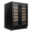 Стеклянная дверь — дополнительный изящный штрих к общему дизайну модели. Специальное покрытие защищает вино от влияния ультрафиолетовых лучей, которые проникают, если шкаф находится в солнечной комнате. Цвет корпуса — черный.