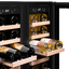 Электронное управление помогает быстро разобраться в том, как функционирует эта модель, и легко настроить все необходимые параметры. На дисплее отображаются данные, которые собирают датчики в камере. Лампочки, расположенные внутри, хорошо подсвечивают бутылки. Всего полок, на которых можно разместить коллекцию, в шкафу 10 шт. Пространство тщательно вентилируется, чтобы воздух не застаивался, не попадали посторонние запахи.