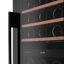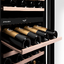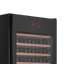 Стеклянная дверь — дополнительный изящный штрих к общему дизайну модели. Специальное покрытие защищает вино от влияния ультрафиолетовых лучей, которые проникают, если шкаф находится в солнечной комнате. Цвет корпуса — черный.
