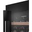 Стеклянная дверь — дополнительный изящный штрих к общему дизайну модели. Специальное покрытие защищает вино от влияния ультрафиолетовых лучей, которые проникают, если шкаф находится в солнечной комнате. Цвет корпуса — черный. Дверь можно перевесить на другую сторону, поэтому вариантов размещения его в доме становится больше.
