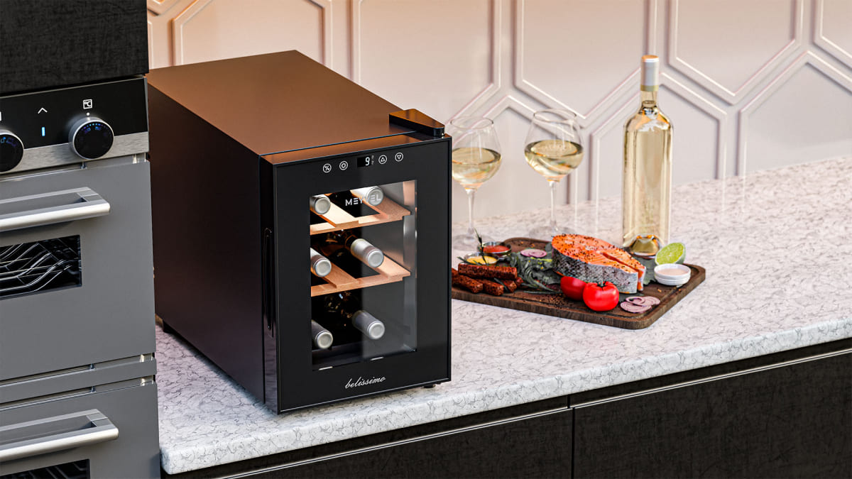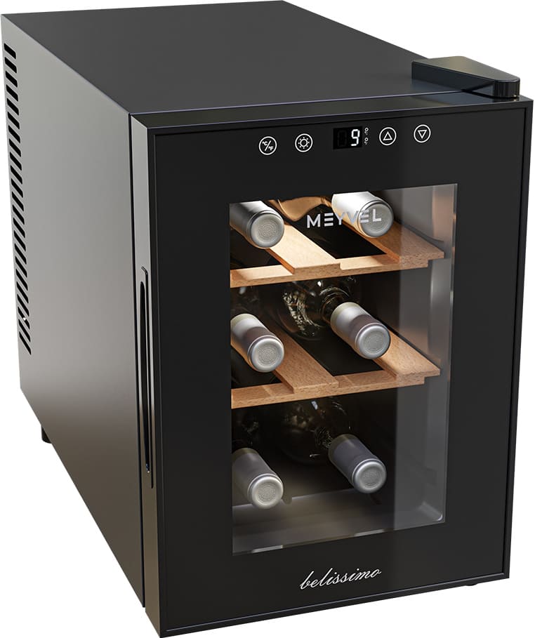 Винный холодильник Meyvel MV06-TBF1-Next имеет одну температурную зону, в которой можно разместить бутылки и единовременно выставить только одну комбинацию настроек. Он устанавливается отдельно, что удобно, если у вас есть специальное помещение — кладовая, погреб и т.д. Благодаря компактным размерам данная модель — отличный выбор для офиса, гостиничного номера. Количество бутылок, которое можно разместить с учетом полной комплектации и из расчета объема бутылки 0,75 л, — 6 шт.