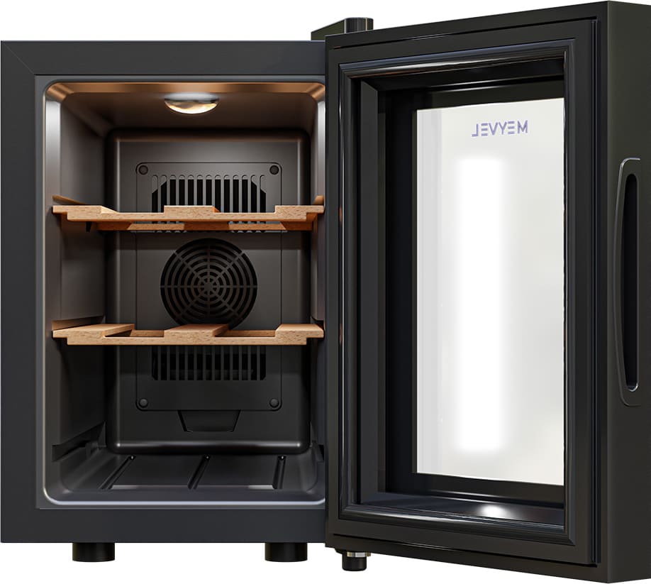 Для длительного сохранения установленных параметров в винных шкафах Meyvel используется дверца с многослойным остеклением. Такое решение позволяет удерживать холод внутри камеры вне зависимости от температуры в помещении, а также сохранить температуру при отключении электроэнергии.