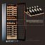 Электронное управление помогает быстро разобраться в том, как функционирует эта модель, и легко настроить все необходимые параметры. На дисплее отображаются данные, которые собирают датчики в камере. Лампочки, расположенные внутри, хорошо подсвечивают бутылки. Всего полок, на которых можно разместить коллекцию, в шкафу 14 шт.