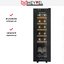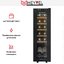 Стеклянная дверь снабжена двойным стеклом с УФ-защитой, что снижает проникновение внутрь вредного излучения и предохраняет вино от его негативного воздействия. Внутреннее пространство рассчитано на 12 бутылок по 0,75 л и имеет общий объем 35 литров. Пять выдвижных полок выполнены из массива бука, они бережно поддерживают бутылки и снижают вибрации при загрузке и извлечении. Дерево не только эстетично выглядит, но и мягче влияет на пробки, чем металлические решетки, а выдвижной механизм облегчает доступ к нижним ярусам.