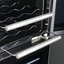 Встраиваемые холодильники для вина оснащаются специальной системой вентиляции: охлаждающая система у них находится в нижней части корпуса спереди. На такие устройства не навешивается мебельный фасад: дверца с затемненным стеклом остается на виду и открывается на достаточно широкий угол для свободного выдвижения деревянных полок.