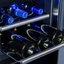 Кнопки для управления подсветкой выносятся на панель управления. Лампы синего, белого или голубого цветов могут располагаться в верхней части камеры или на боковых сторонах. Дополнительное освещение может устанавливаться в винных холодильниках с зоной для сервировки: она обеспечивает лучший обзор и доступ при подготовке вина к подаче.