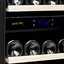Современные винные шкафы всех типов, в том числе компрессорные, темоэлектрические и абсорбционные, оснащаются электронной системой управления — кнопочной или сенсорной. Панель управления, с помощью которой производится регулировка параметров работы, может размещаться внутри винного шкафа за дверцей или снаружи в верхней части корпуса. Второй вариант более удобен, поскольку для изменения параметров не нужно открывать дверцу. Кроме того, такое расположение панели управления позволяет поддерживать более стабильную температуру в камере. Однако для больших винных шкафов в классическом стиле из ценных пород дерева предпочтительнее скрытая панель управления, которая не портит их внешний вид.