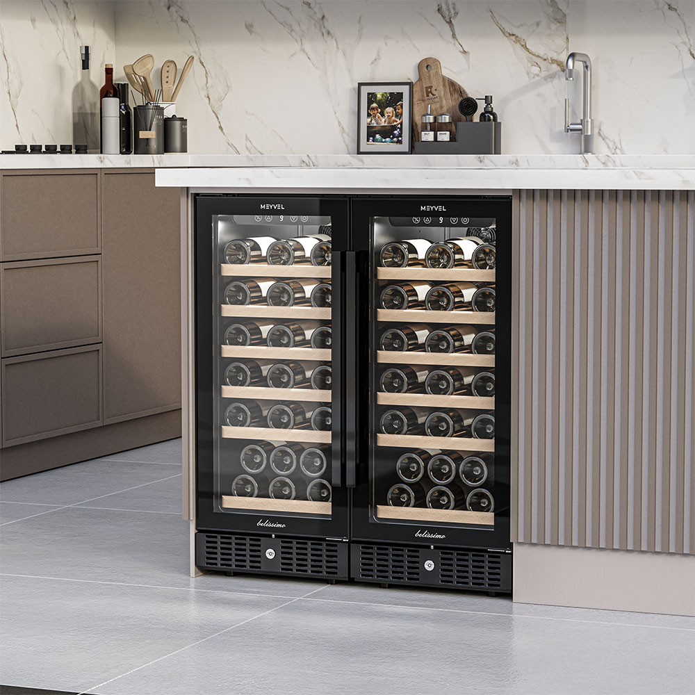 Для длительного сохранения установленных параметров в винных шкафах Meyvel используется дверца с многослойным остеклением. Такое решение позволяет удерживать холод внутри камеры вне зависимости от температуры в помещении, а также сохранить температуру при отключении электроэнергии.