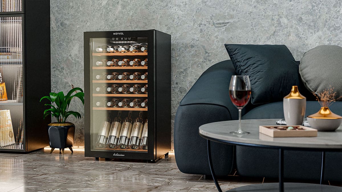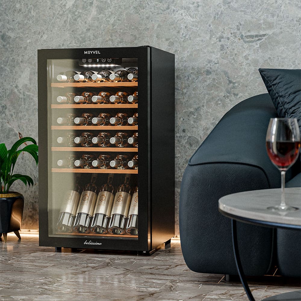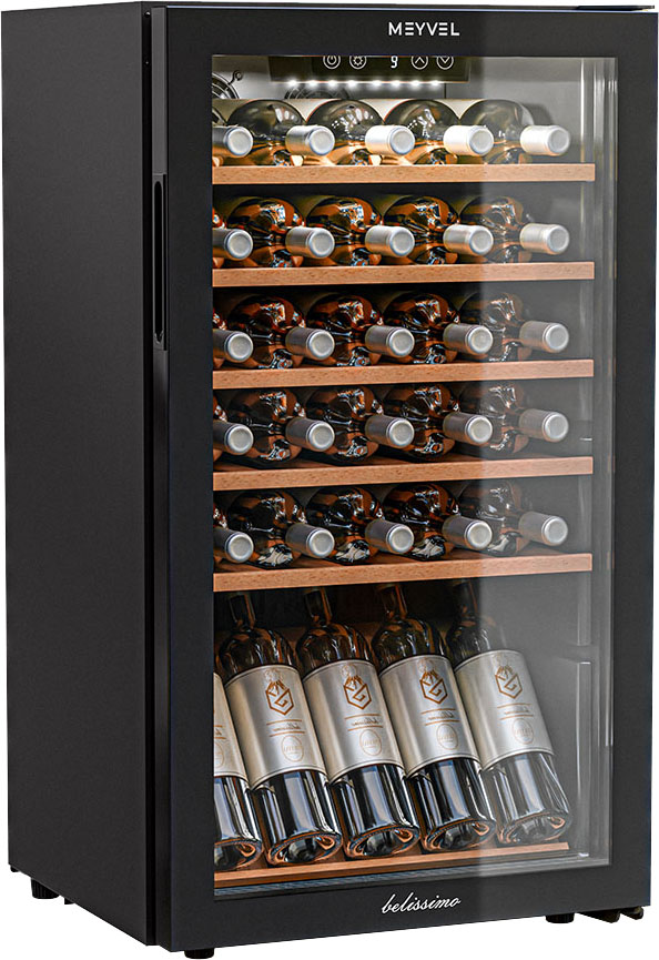 Винный холодильник Meyvel MV33-KBF1 имеет одну температурную зону, в которой можно разместить бутылки и единовременно выставить только одну комбинацию настроек. Он устанавливается отдельно, что удобно, если у вас есть специальное помещение — кладовая, погреб и т.д. Благодаря компактным размерам данная модель — отличный выбор для офиса, гостиничного номера. Количество бутылок, которое можно разместить с учетом полной комплектации и из расчета объема бутылки 0,75 л, — 30 шт.