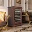 Стеклянная дверь — дополнительный изящный штрих к общему дизайну модели. Специальное покрытие защищает вино от влияния ультрафиолетовых лучей, которые проникают, если шкаф находится в солнечной комнате. Хранение становится еще безопаснее и герметичнее благодаря нескольким слоям стекол. Цвет корпуса — орех.