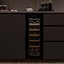 Встраиваемые холодильники для вина оснащаются специальной системой вентиляции: охлаждающая система у них находится в нижней части корпуса спереди. На такие устройства не навешивается мебельный фасад: дверца с затемненным стеклом остается на виду и открывается на достаточно широкий угол для свободного выдвижения деревянных полок.