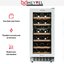 Стеклянная дверь — дополнительный изящный штрих к общему дизайну модели. Специальное покрытие защищает вино от влияния ультрафиолетовых лучей, которые проникают, если шкаф находится в солнечной комнате. Хранение становится еще безопаснее и герметичнее благодаря нескольким слоям стекол. Цвет корпуса — белый. Дверь можно перевесить на другую сторону, поэтому вариантов размещения его в доме становится больше.