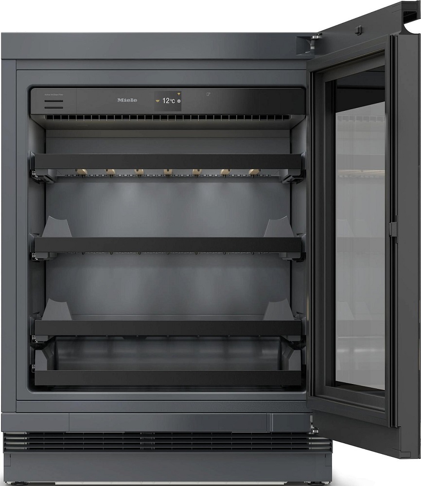 Встраиваемый винный шкаф Miele KWTUS 7054 F сочетает аккуратный минимализм дизайна и инженерную точность настройки работы. Он относится к монотемпературным устройствам и предоставляет возможность хранения напитков лишь в одной температурной зоне. Внутренний объем около 110 литров вмещает до 44 стандартных бутылок объёмом 0,75 л. Это удобно для небольшой коллекции и хорошо подходит для оснащения домашней кухни. Компрессорное охлаждение помогает поддерживать постоянную температуру, а динамическая система равномерно распределяет потоки воздуха внутри.