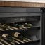 Встраиваемые холодильники для вина оснащаются специальной системой вентиляции: охлаждающая система у них находится в нижней части корпуса спереди. На такие устройства не навешивается мебельный фасад: дверца с затемненным стеклом остается на виду и открывается на достаточно широкий угол для свободного выдвижения деревянных полок.