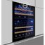 Все настройки легко задать на панели управления, которая пересекает камеру и делит ее на два отсека. На ней расположены сенсорные кнопки и маленький цифровой дисплей, который отображает температуру в обеих зонах. Стеклянная дверь имеет защиту от ультрафиолетовых лучей, это означает, что солнечная комната не будет препятствием для установки шкафа. Белая рамка хорошо сочетается с мебелью соответствующего цвета, а также с приборами из нержавеющей стали.