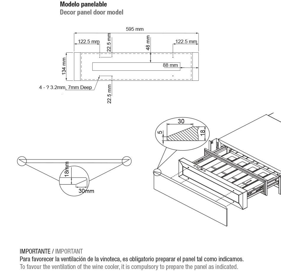 Встраиваемые холодильники для вина оснащаются специальной системой вентиляции: охлаждающая система у них находится в нижней части корпуса спереди. На такие устройства не навешивается мебельный фасад: дверца с затемненным стеклом остается на виду и открывается на достаточно широкий угол для свободного выдвижения деревянных полок.