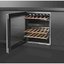 Встраиваемые холодильники для вина оснащаются специальной системой вентиляции: охлаждающая система у них находится в нижней части корпуса спереди. На такие устройства не навешивается мебельный фасад: дверца с затемненным стеклом остается на виду и открывается на достаточно широкий угол для свободного выдвижения деревянных полок.