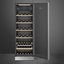 Винный холодильник Smeg SCV115G имеет две температурные зоны, в которых одновременно можно хранить разные сорта алкоголя и выставлять разные сочетания настроек. Он устанавливается отдельно, что удобно, если у вас есть специальное помещение — кладовая, погреб и т.д. Количество бутылок, которое можно разместить с учетом полной комплектации и из расчета объема бутылки 0,75 л, — 197 шт.