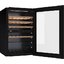 Электронное управление помогает быстро разобраться в том, как функционирует эта модель, и легко настроить все необходимые параметры. На дисплее отображаются данные, которые собирают датчики в камере. Лампочки, расположенные внутри, хорошо подсвечивают бутылки. Всего полок, на которых можно разместить коллекцию, в шкафу 4 шт.