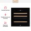 Стеклянная дверь — дополнительный изящный штрих к общему дизайну модели. Специальное покрытие защищает вино от влияния ультрафиолетовых лучей, которые проникают, если шкаф находится в солнечной комнате. Хранение становится еще безопаснее и герметичнее благодаря нескольким слоям стекол. Цвет корпуса — черный.