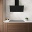 Вытяжки с наклонной фронтальной панелью позволяют освободить пространство над варочной панелью, при этом мощность забора воздуха не страдает от конфигурации модели. Такими вытяжками удобно управлять, так как кнопки обычно находятся спереди, доступ к ним максимально облегчен. Зачастую есть всасывание по периметру.