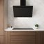 Вытяжки с наклонной фронтальной панелью позволяют освободить пространство над варочной панелью, при этом мощность забора воздуха не страдает от конфигурации модели. Такими вытяжками удобно управлять, так как кнопки обычно находятся спереди, доступ к ним максимально облегчен. Зачастую есть всасывание по периметру.