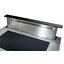 Вытяжки, встраиваемые в столешницу — эффективная инновация, которая подойдет для установки в кухне любой площади. Такие вытяжки размещаются за варочной поверхностью или рядом с ней. В отключенном состоянии всасывающая панель находится под столешницей, но после включения одной или нескольких конфорок она автоматически выдвигается при помощи специального лифтового механизма. Загрязненный воздух улавливается, не успевая распространиться по помещению. Когда вытяжка убрана, на виду остается только сенсорная панель управления. Недостатком подобных моделей является только сравнительно высокая цена.