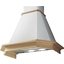 Еще один универсальный цвет — белый, он особенно хорошо подходит для небольших кухонь, так как зрительно способен расширить пространство. На белом фона меньше заметны капли воды и даже частицы жира. В классическом или античном белом выполняются купольные и каминные вытяжки, угловые и встраиваемые модели. Светлые кремовые тона, оттенок слоновой кости — наиболее распространенный вариант для больших вытяжек с окантовкой из натурального дерева.
